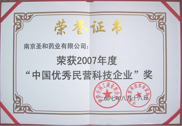 2007中國(guó)優(yōu)秀民營(yíng)科技企業(yè)