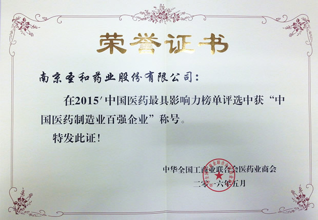 2015年度中國醫(yī)藥制造業(yè)百強企業(yè)