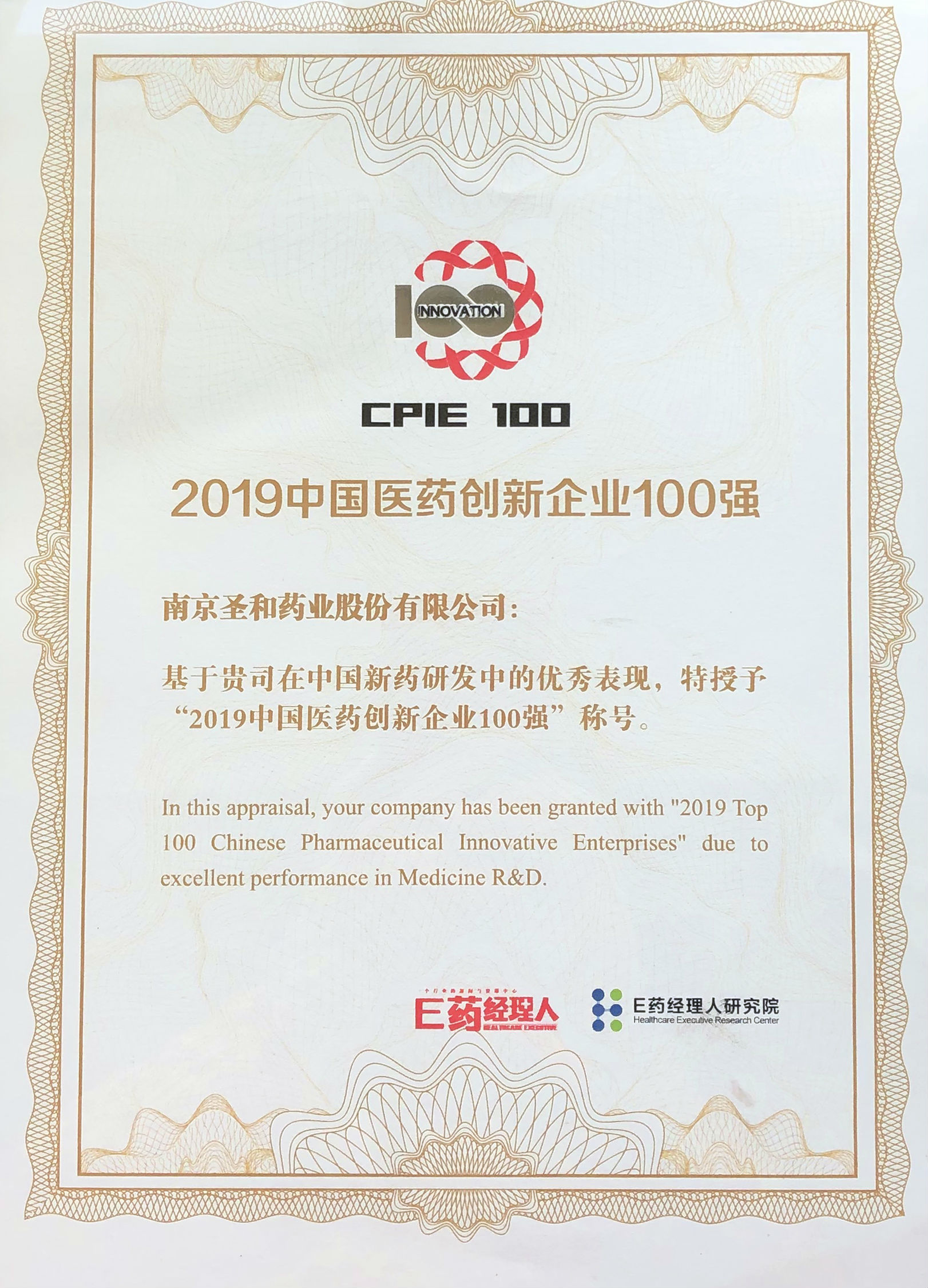 2019年中國醫(yī)藥創(chuàng)新企業(yè)100強(qiáng)